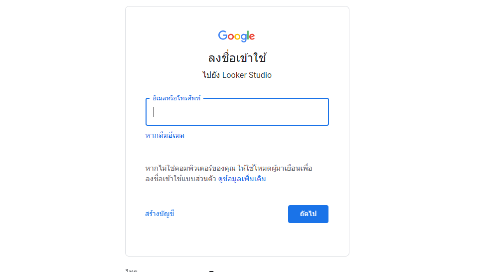 ปล. หากยังไม่มีบัญชี Google ให้สมัครสร้างบัญชีที่ “สร้างบัญชี” ให้เรียบร้อยก่อนนะครับ