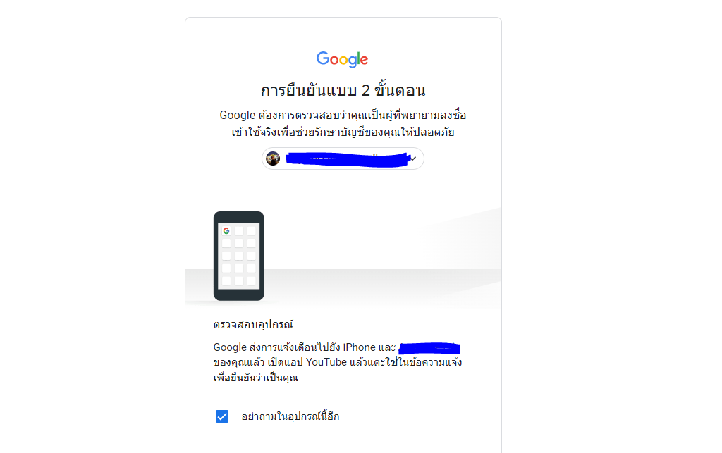 4. หากมีหน้ายืนยันตัวตน 2 ขั้นตอนขึ้นมา ให้ทำการยืนยันตัวในตามคำแนะนำในมือถือของเรา