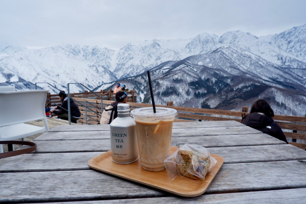 ข้างบนลานสกี Hakuba Iwatake นี้จะมีร้านกาแฟชื่อ The City Bakery ที่มีจุดเด่นคือระเบียงนั่งจิบกาแฟขบขนมปังชมวิว เทือกเขา Japan Alp ไปด้วยได้ พวกเรานั่งกันอยู่พักใหญ่เลยครับร้านนี้