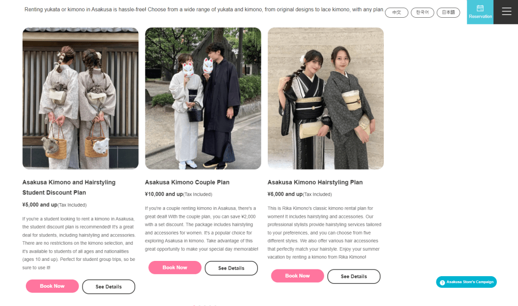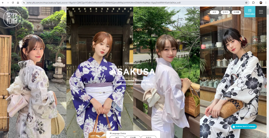 ร้านที่พวกเราเลือกเช่าชุดมีชื่อว่า Wargo Kimono Rental สาขา Asakusa เนื่องจากชอบธีมชุดร้านนี้ และยังอยู่ใกล้วัด Sensoji (คือเปลี่ยนชุดแล้วเดินไปวัดได้เลย)