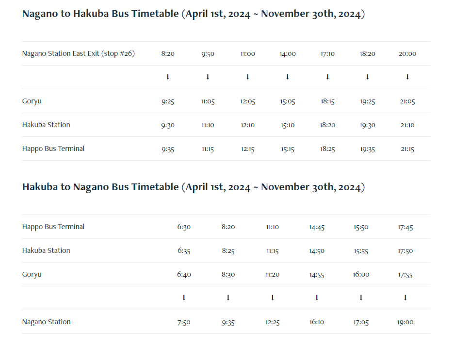 ดูข้อมูลเพิ่มเติมได้ที่ Nagano-Hakuba Bus