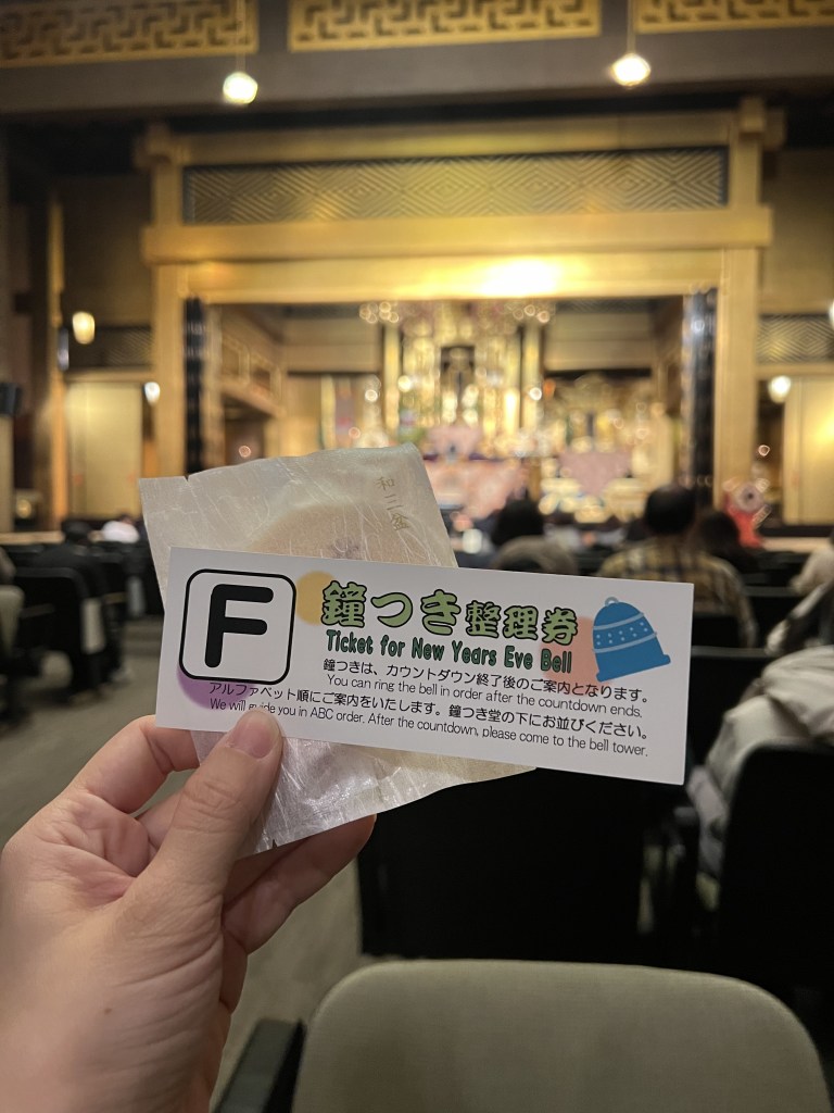 จากนั้นเจ้าหน้าที่จะเชิญเรามานั่งฟังการสวดมนต์ข้ามปีในห้อง hall ของวันนี้ ซึ่งตามกำหนดการที่เขียนไว้ในตั๋ว เราจะสามารถไปสั่นระฆังเพื่อขอพรหลังการ countdown ได้ด้วย แต่ที่น่าเสียดายคือว่าพวกเราต้องกลับก่อนที่จะได้สั่นระฆังเพราะเช็คดูแล้วว่าช่วงเวลานั้นจะไม่มีรถไฟกลับไปที่ที่พัก แล้วก็ค่า taxi ของที่ญี่ปุ่นราคาก็แรงใช้ได้ ดังนั้นถ้าใครจะมาร่วมงานสิ้นปีของที่ญี่ปุ่นเราแนะนำว่าให้เช่ารถไว้ก็จะไม่ต้องกังวลในเรื่องนี้