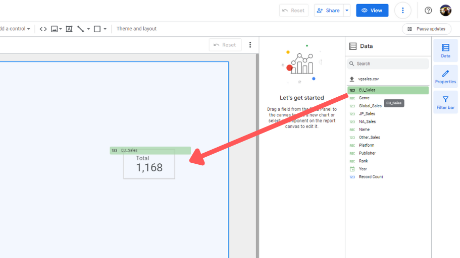 - เราสามารถคลิ๊กลาก Data ที่เราต้องการมาวางลงบน dashboard ได้เลย โดย Default จะแสดงเป็น Score Card