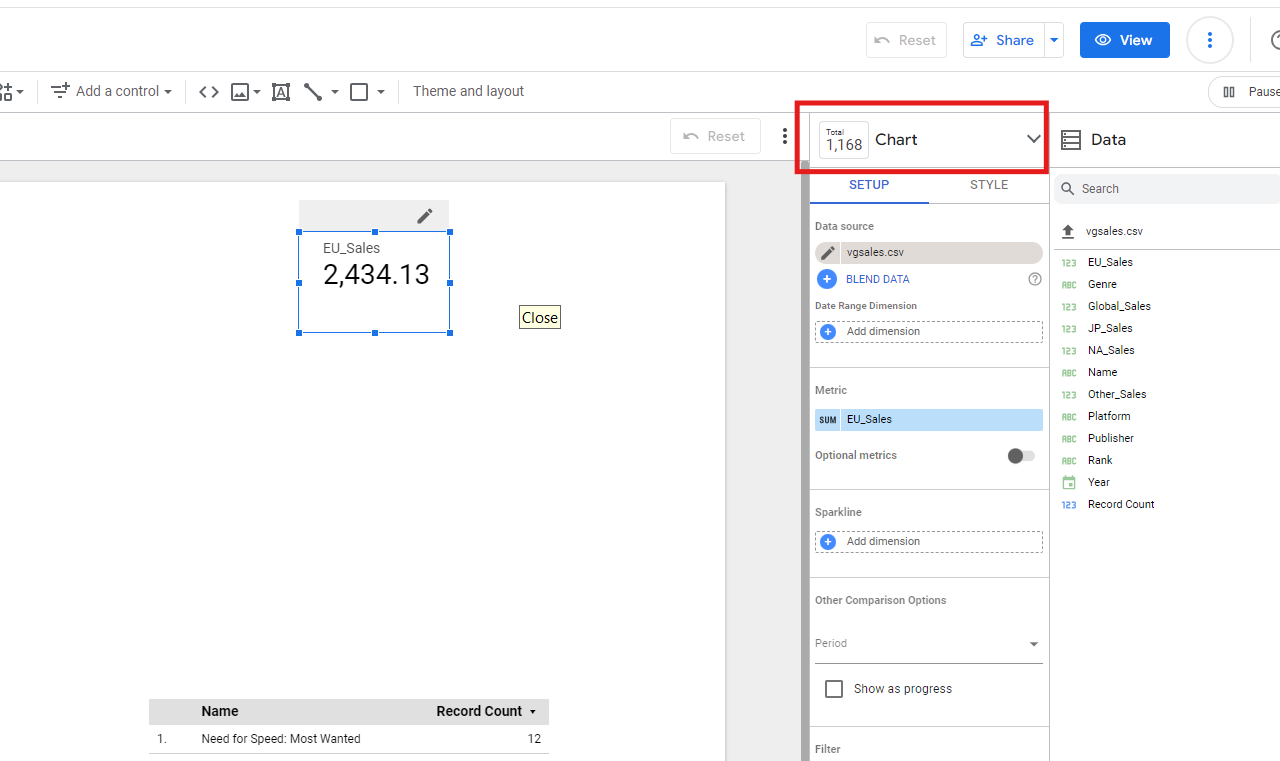 ในแถบ Setup และ Style ยังมีอีกหลายอย่างที่เราสามารถเข้าไปตั้งค่า (คล้ายกับการ customize chart ใน Excel, Google Sheet เลย)