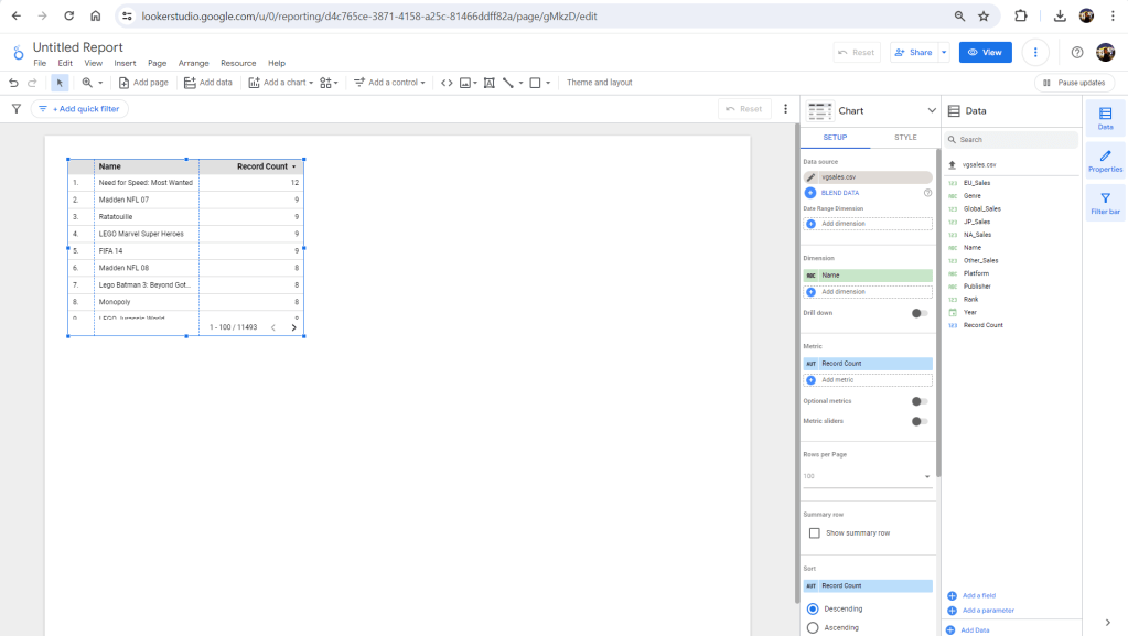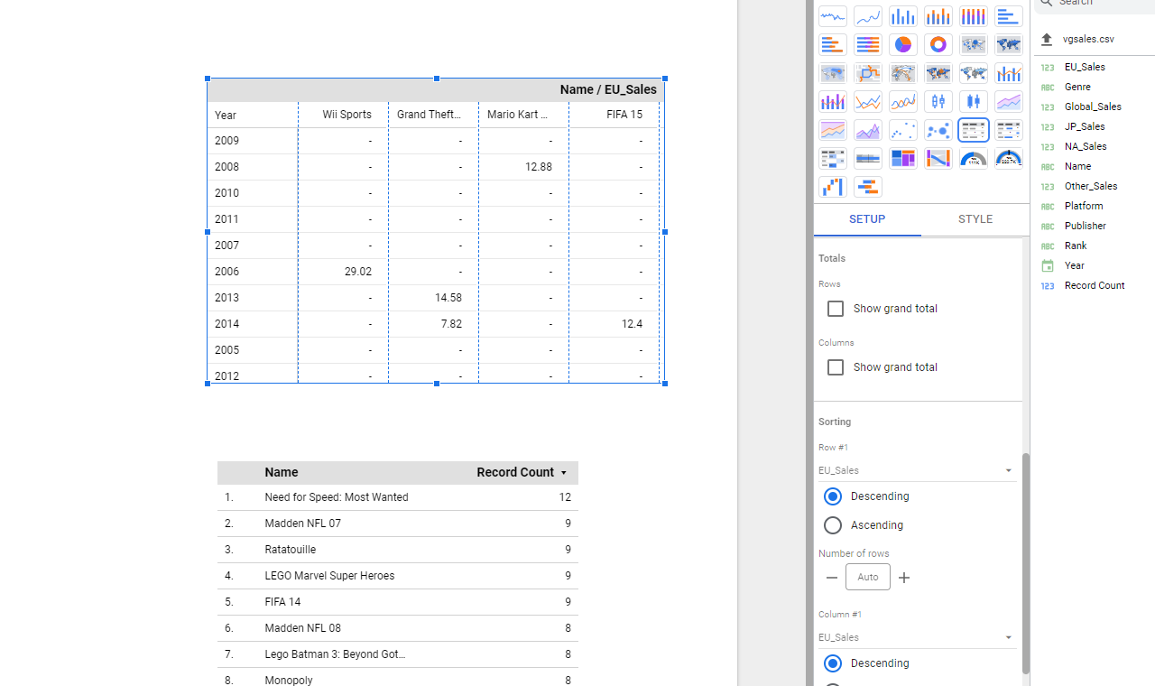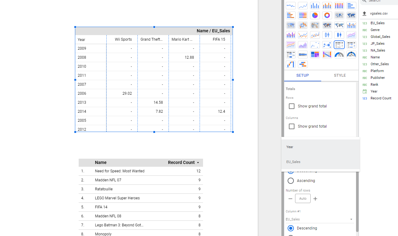ให้เปลี่ยน EU_Sales ใน Row #1 เป็น Year เท่านี้ข้อมูลใน Table ก็จะเรียงตามปีให้เราแล้วครับ- Descending order: เรียงจากมากไปน้อย