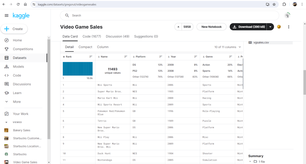 ก่อนะไปลุยเรื่องการ import data นั้น ผมอยากให้แชร์ให้ทุกคนก่อนว่า dataset ที่นำมาใช้ครั้งนี้คือ Video Game Sales.csv ที่แชร์ให้อยู่บน Kaggle เว็บตัวตึงที่สาย Data ต้องเคยเข้าไปใช้งานกัน เพื่อนๆสามารถเข้าไปโหลดได้ตามลิ้งข้างล่างนี้เลยครับ