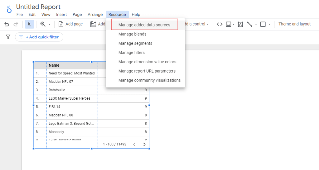 - ให้มาที่แถบเมนูด้านบนแล้วเลือก Resource > Manage added data sources