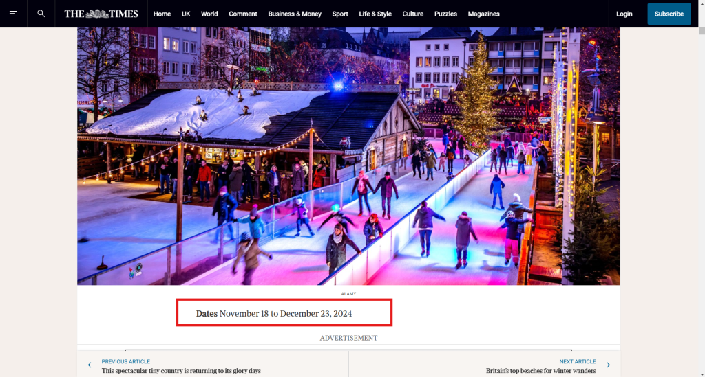 ข้อมูลระยะเวลาที่จัดตลาดหลักๆ อ้างอิงจาก website TheTimes ที่เป็นสื่อชื่อดังในอังกฤษ ในโพส “29 of the best Christmas markets in Europe for 2024”