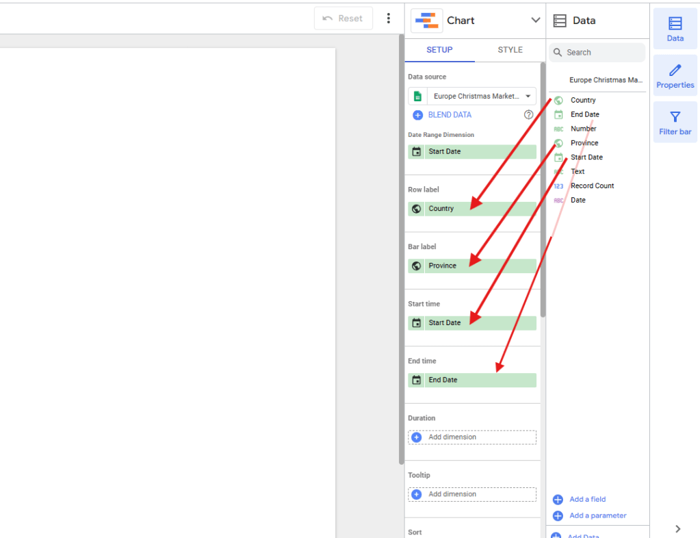 เมื่อ Connect Data กันเรียบร้อยแล้ว ต่อไปเรามาสร้าง Timeline Chart กันครับ