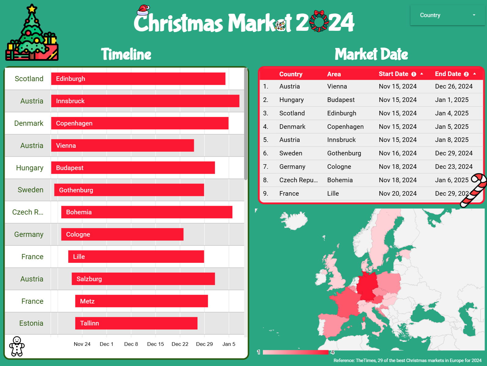 โพสนี้เรามาสร้าง Dashboard เอาใจสายท่องเที่ยว โดยเฉพาะคนที่จะไปเที่ยวตลาด Christmas ในยุโรปเลยว่าช่วงที่เราไปเที่ยวนั้น มีจัด Christmas market ที่ไหนอยู่บ้าง ส่วนเพื่อนๆที่ไปเที่ยวที่อื่น ไม่ต้องเสียใจไปครับ สามารถเอาวิธีจากโพสนี้ไปลองสร้างตามการใช้งานของทริปตัวเองได้เลย เย้ๆ~
