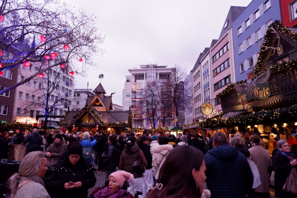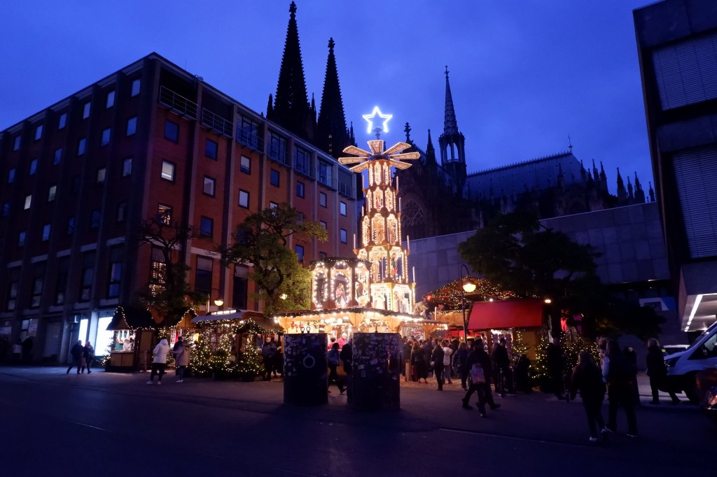 Christmas market ที่ Cologne จะมีจัดหลายจุดแต่ที่คิดว่าเป็นไฮไล์ของที่นี่คือข้างวิหาร Cologne Cathedral นี่เหมาะสมแล้วที่ติดอันดับต้นๆ ด้วยประการทั้งปวง งานคึกคัก คนเยอะมากแถมมีจัดหลายตลาด