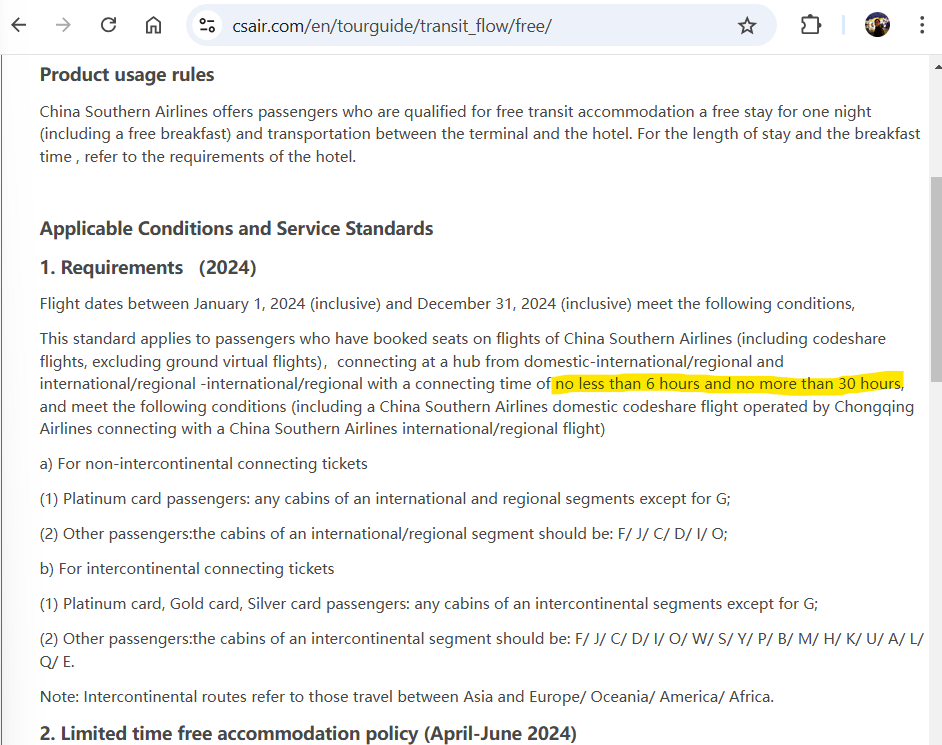ตัวอย่างบริการที่พักระหว่าง Transit ของสายการบิน China Southern Airline ปี 2024 นี้ สำหรับคนที่รอต่อเครื่อง มากกว่า 6 แต่ไม่เกิน 30 ชม.