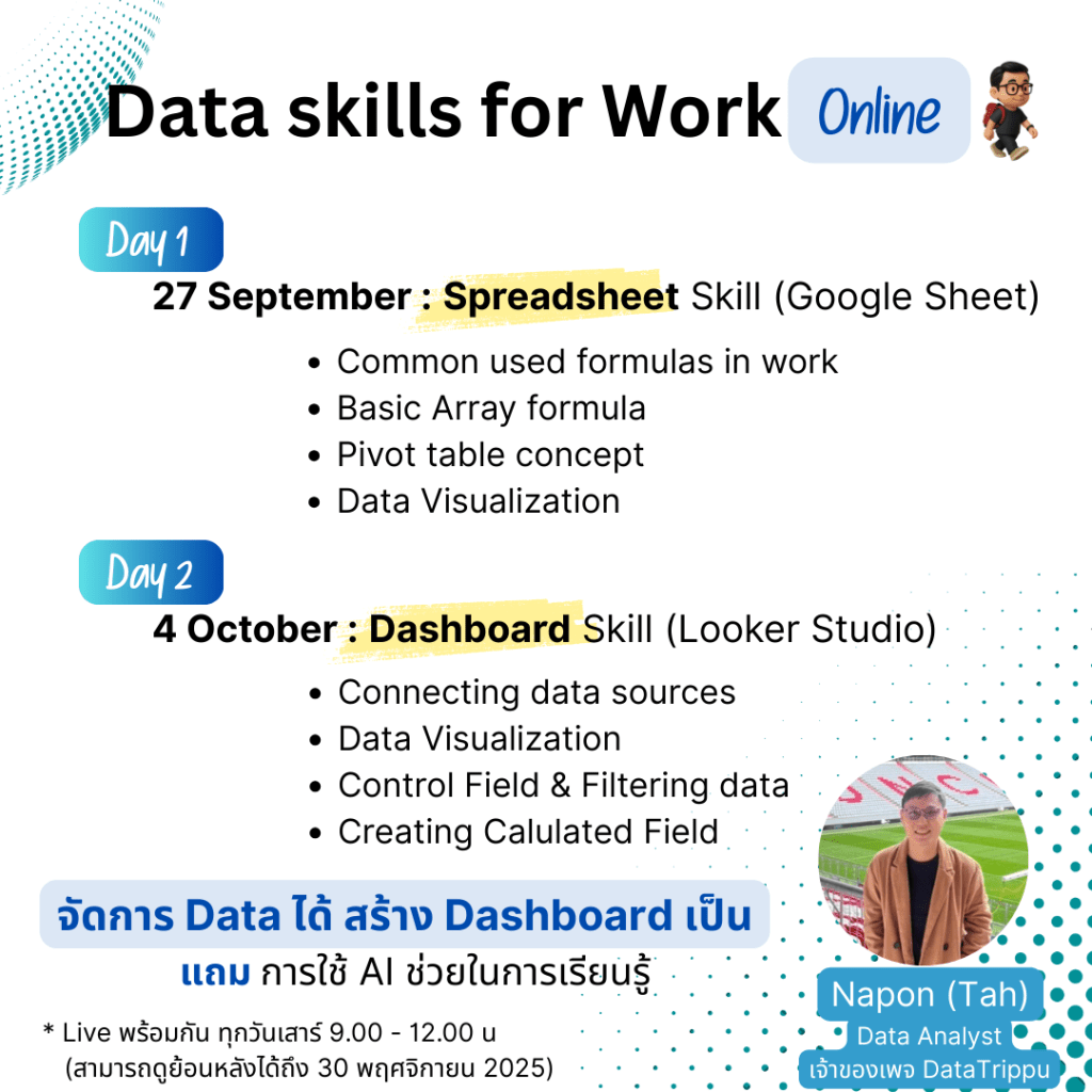 📌Day2 วันเสาร์ที่ 4 Oct 2025 (9.00 – 12.00 น.): Dashboard skill ด้วย Looker Studio (Google Data Studio)