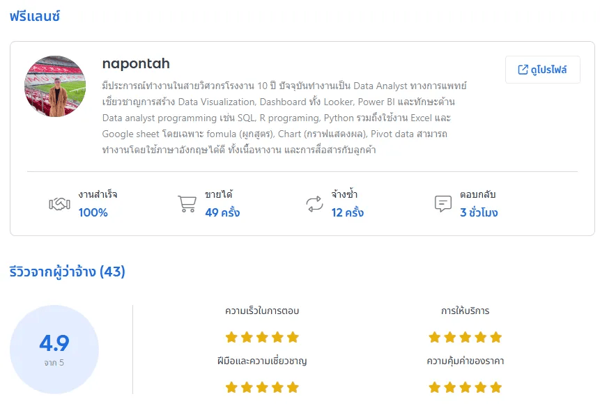 แอดเองเคยรับงาน Freelance ส่งมอบ Dashboard ไปแล้วกว่า 50 งาน ทั้งบน platform และส่วนตัว นับว่าไม่น้อยเลยสำหรับคนที่ย้ายสายงาน