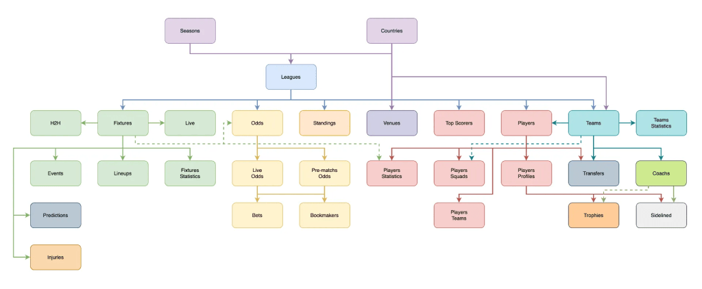 ใน API-Football เราสามารถใช้ Data Architecture เพื่อ ‘นำทาง’ ให้เราได้ตามรูปด้านล่างนี้