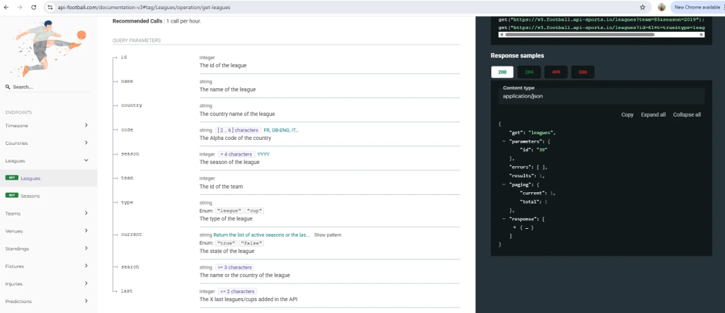 - ถ้าต้องการข้อมูลเกี่ยวกับ Leagues ให้ไปที่: https://v3.football.api-sports.io/leagues
