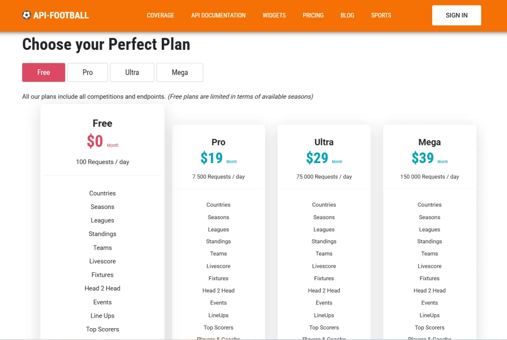 2 เจ้าบนถ้าเป็น Free plan จะดึงข้อมูลได้ทั่วๆไป ถ้าอยากดึงข้อมูลเชิงลึกเช่น สถิติส่วนตัวผู้เล่น (Player stats) จะต้องจ่ายเงินเป็น Paid plan